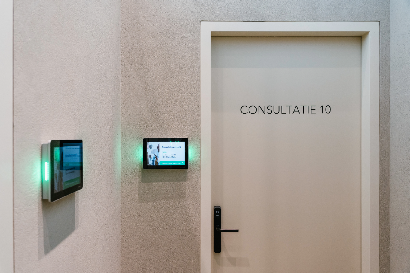 De schermpjes zijn touchdisplays. Je kunt op het schermpje zelf kiezen welke informatie je te zien krijgt. De indeling hiervan is helemaal op jouw wensen aan te passen. Standaard zal het schermpje de dagplanning aangeven. Door op het scherm te drukken krijg je uitgebreide informatie zoals een maandplanning, het onderwerp van de vergadering, de status van je reservering en statussen van andere vergaderruimtes. Hierdoor komen er nooit meer mensen de ruimte binnen om te vragen tot hoe laat de ruimte bezet is.